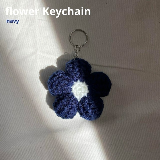 «ぷっくりお花のキーホルダー» ✦︎カラー ネイビー ✦︎素材 アクリル100% ✦︎サイズ お花本体 : 縦横約8cm ⚠️2枚目の画像はサンプルです。 ✦︎お手入れ ︎ ✧洗濯は優しく手洗いでお願いいたします。 ︎ ✧ひとつひとつ丁寧に製作しておりますが、全て手編みのため、多少の目のばらつきやサイズに誤差が生じる場合がございます。 ハンドメイド作品であることをご理解の上ご購入お願いいたします。